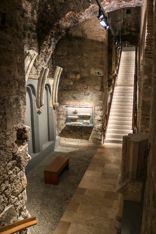 Fotó: A középkori eredetű Albrecht-pince a középkori palota vízellátását bemutató kiállítással