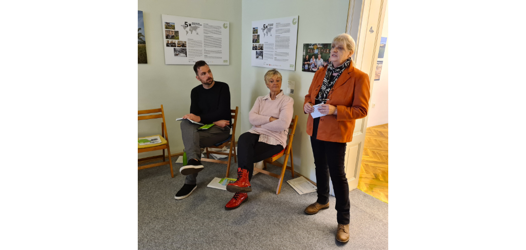 Még ebéd előtt került sor Dr. Trippó Sándornak, a Budapesti Goethe Intézet nyelvi szakreferensének bevezető kiselőadására, amely a Vasváry-ház első frontjának nyugati és keleti szárnyában megrendezett „5 x Deutschland in aller Welt. Im Spiegel der Migration “(magyarul: „5 x Németország. Szerte a világon”) címen készült kiállításhoz kapcsolódott. Az egyébként Balmazújváros mellett maga is sváb családból származó, a Debreceni Egyetemen végzett és évekig ott oktató fiatalember személyében hitelesítette azokat a kortárs körülményeket, amelyek a nyelvi-kulturális megértés, a mindenkor jelen lévő – nem feltétlenül kényszeres – egymásra utaltság és korszerű kapcsolatépítés nagy tradíciókkal bíró fundusán nyugszanak. Ismeret- és gondolatgazdag, ötletes, jobbára társas alkotó és felfedeztető feladatok játékos alkalmazásával vezette be az összes résztvevőt az öt kiállítóhelyiségben elrendezett fotó kiállítás sugallta világokban. A szellemi kalandvágyat és aktivitást a közeli „fapados” hangulatú István Pince Étteremben elköltött ebéd sem csökkentette, - sőt!