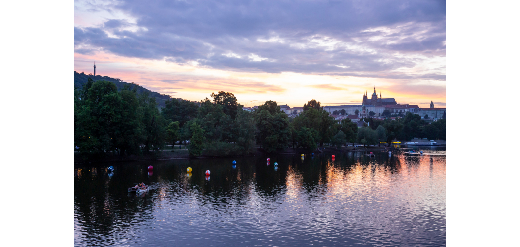 Új vizekre evezett Vincze Ottó Munkácsy-díjas képzőművész River-pool installációja. Szentendre (2016), Velence (2017), Tata (2018) után idén nyáron Prágában, a Moldva hullámain ringatóznak az óriás ütközőbóják. A prágai Liszt Intézet fennállásának 70. évfordulóján Szentendréről Farkas Zsófia szobrászművész is bemutatkozott a cseh fővárosban csodálatos üvegszobraival.