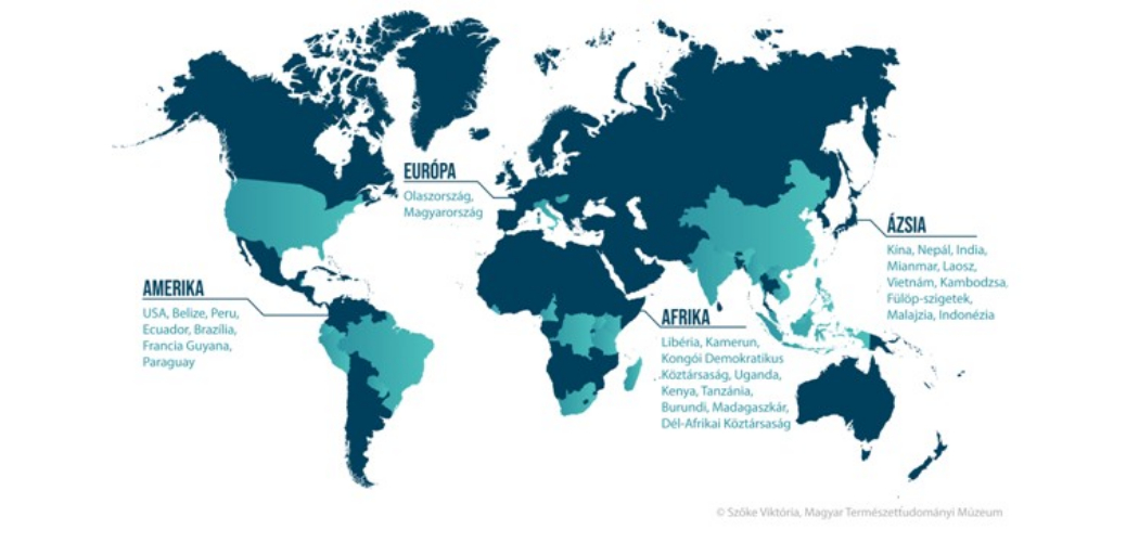A világ összesen 28 országból írtak le tudományra új fajokat 2021-ben az MTM dolgozói. Földrajzi eloszlásuk szépen tükrözi a múzeum biodiverzitás-kutató tevékenységének a Kárpát-medence kutatása melletti hagyományos, esetenként már évszázados múltú erősségeit: Ázsia középső, keleti és déli részei mellett Új-Guinea térsége és Afrika zoológiai kutatása is erősen magán viseli a Magyar Természettudományi Múzeum egykori és mai szakembereinek névjegyét. Amerika taxonómiai kutatásában általában kisebb a szerepünk, mint az Óvilágéban, de a 2021-es évben e téren is jelentős eredmények születtek.
