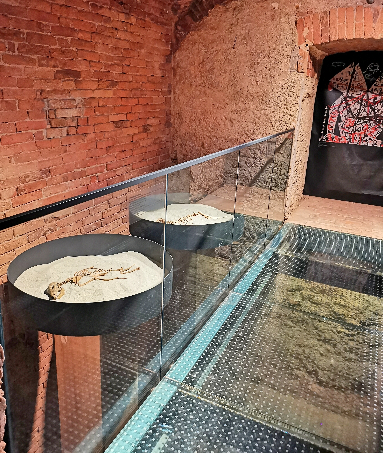 A régészeti szemszög is megjelenik a kiállításon. Több ókori és középkori lelet is látható, például csontváz, mancslenyomatok és megkövesedett kutyaürülék a 15. és 16. századból. Három csontváz is megtalálható az egyik teremben, amelyeket áldozati szertartás keretében temethettek el. Elterjedt volt az a hiedelem, hogy "az új ház áldozatot követel". Emiatt az első éjszaka az a személy aludt az új házban, akinek a halálát nem tekintették kárnak, például a legidősebb családtag vagy egy gyógyíthatatlan beteg, de többnyire kutya, macska vagy csirke volt bezárva a még üres házba. Előfordult, hogy beköltözéskor az állatokat megölték, például a kutyákat agyonverték a küszöbön.