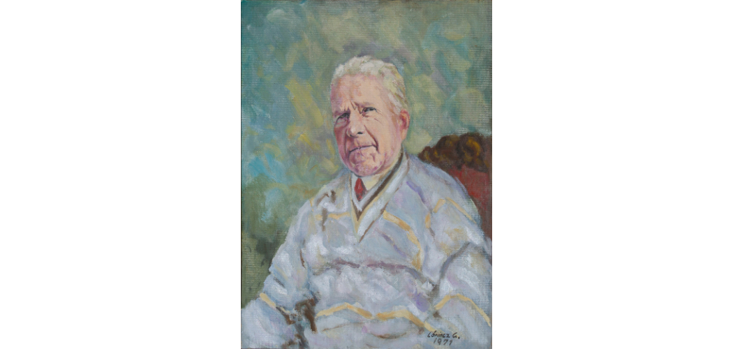Lőrinc Gyula: Tallós Prohászka István portréja, 1971, olaj, vászon, 65,5x53,7 cm, Mosonmagyaróvár, Hansági Múzeum, ltsz. 2023.02.01.