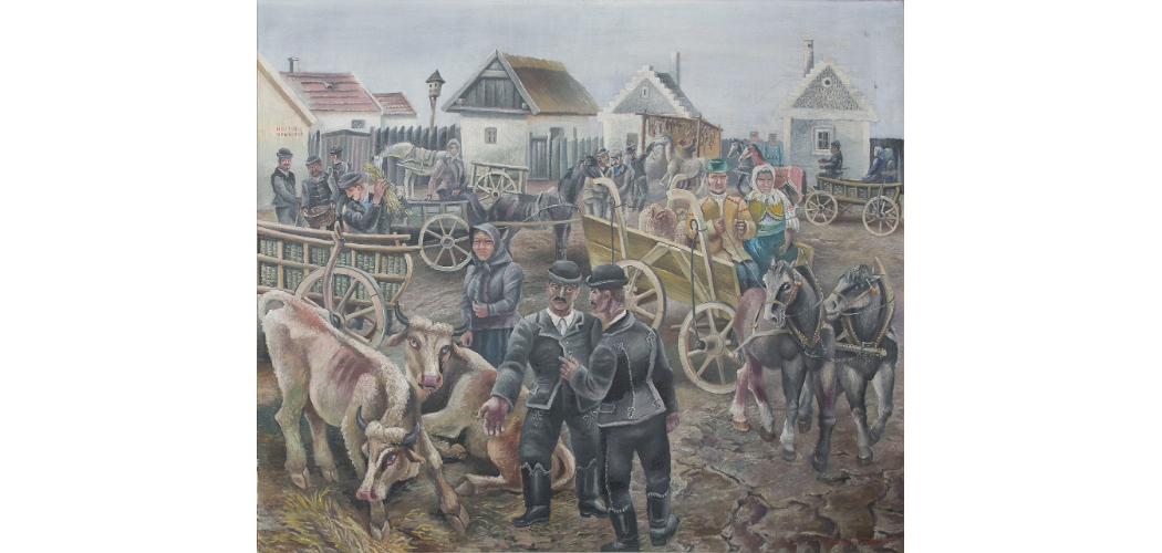 Tallós Prohászka István: Állatvásár, 1937, olaj, vászon, magángyűjtemény