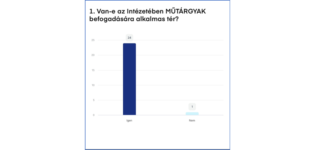 A kérdőívre a 26 intézetből 25 választ kaptam. Az első kérdés – értelemszerűen – arra vonatkozott, hogy van-e az adott állomásnak olyan tere, melyben kiállításokat tud rendezni. E tekintetben nem állunk rosszul – egy helyszín kivételével mindenhol van mód kiállítások szervezésére.