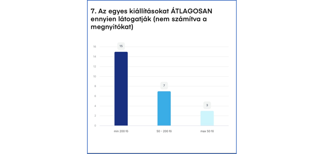 Fontosnak a 7. kérdést. Bár az intézetek heroikus küzdelmet folytatnak, hogy szélesítsék közönségük köreit, szinte minden esetben nehézséget jelent, hogy olyan városokban működnek, ahol az év egészében magas színvonalú, gazdag kulturális programkínálat jellemző. Nem ritka, hogy a magyar nemzeti kulturális intézményeken túl további 20-25 más ország kulturális központja/intézete is hasonló erőkkel próbálja magára irányítani a látogatók figyelmét.