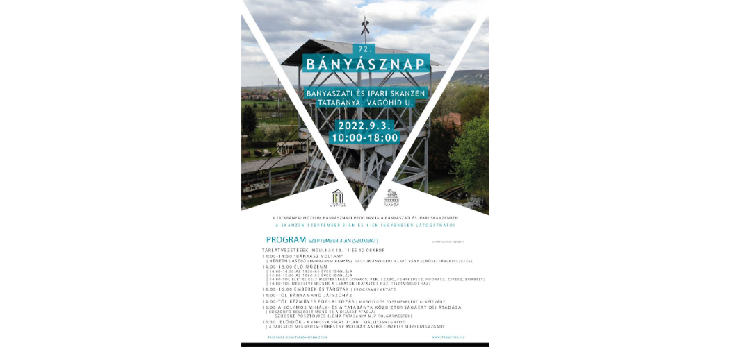Egy héttel később, 2022. szeptember 3-án 10 és 18 óra között vár a 72. Bányásznap a tatabányai Bányászati és Ipari Skanzenben!