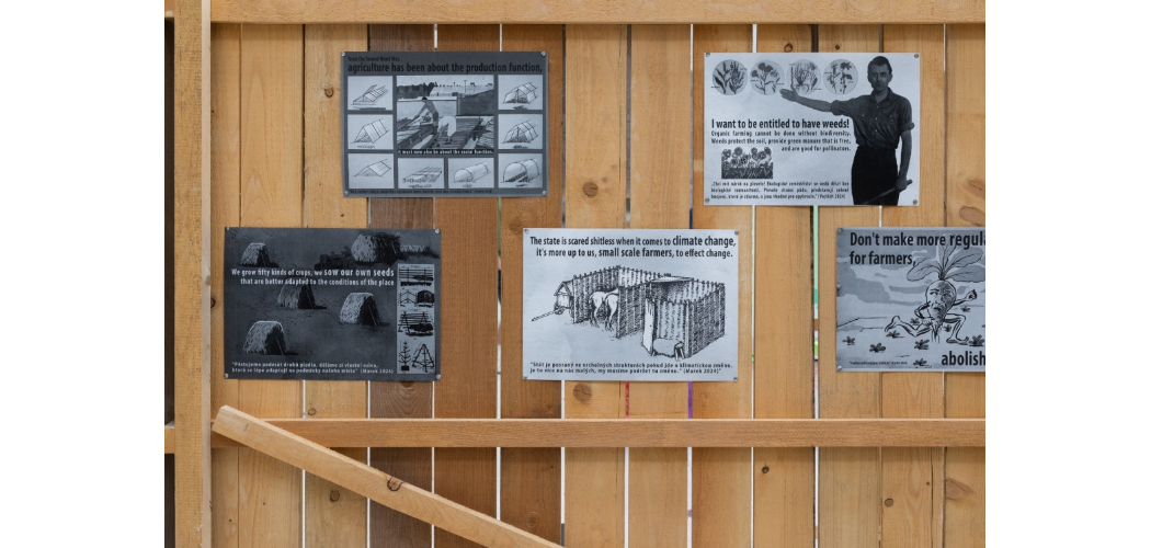 Másrészt a művek között van olyan alkotás is, amely bemutatja az ipari mezőgazdaság globalizált rendszerének egyik lehetséges, lokális alternatíváját is, az agroökológiai gazdálkodásban résztvevő farmerek bevonásával, akik a mezőgazdasági termelésüket az ökológiai, társadalmi és gazdasági fenntarthatóság szempontjai szerint alakítják. A kiállítás címe egyrészt utal a gazdaság által okozott drasztikus környezetpusztításra, másrészt a művekben körvonalazódó élhetetlen rendszer elleni radikális gesztusra, de akár a termelők által végzett kétkezi munkára is.