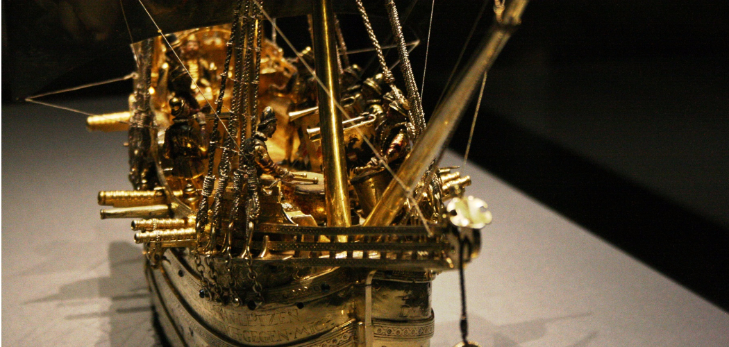 A kora újkorban a hajó, hadi és kereskedelmi célzatú felhasználásán kívül, politikai és reprezentációs jelentéssel is bírt, a hatalom, a hódítás és a felfedezések szimbóluma volt. A II. Rudolf német-római császár (1676-1612) Kunstkammeréből származó asztali díszként használt hajóautomata a vendégfogadásokkor éppen ezeket a fogalmakat jelenítette meg, kifejezte a tárgy az uralkodó, gazdagságát, kiterjedt hatalmát és birodalmát, valamint katonai erejét. Az aprólékosan megmunkált, 67 cm magas, 67 cm széles és 66 cm hosszú, aranyozott ezüst hajó az augsburgi Hans Schlottheim arany-és óramester, automatakésztítő munkája, 1586-ra datálható. A mester prágai udvari tartózkodása alatt több óraművet is készített az uralkodó megrendelésére, Rudolf gyűjteményében tőle és más mesterektől is találhatók analógiák. A hajóautomata vitorláin a vízhez és a hajózáshoz köthető mitológiai alakok és jelentek láthatók, a zászlókon és trombitákon pedig a Habsburg család címere. Apró bábui egy lassú, ünnepélyes dallamot játszanak, majd kis szünet után a hajó egy hasonló, gyorsabb, magasabb hangú tételre elindul, majd 2 ágyúlövéssel fejezi be mozgását: