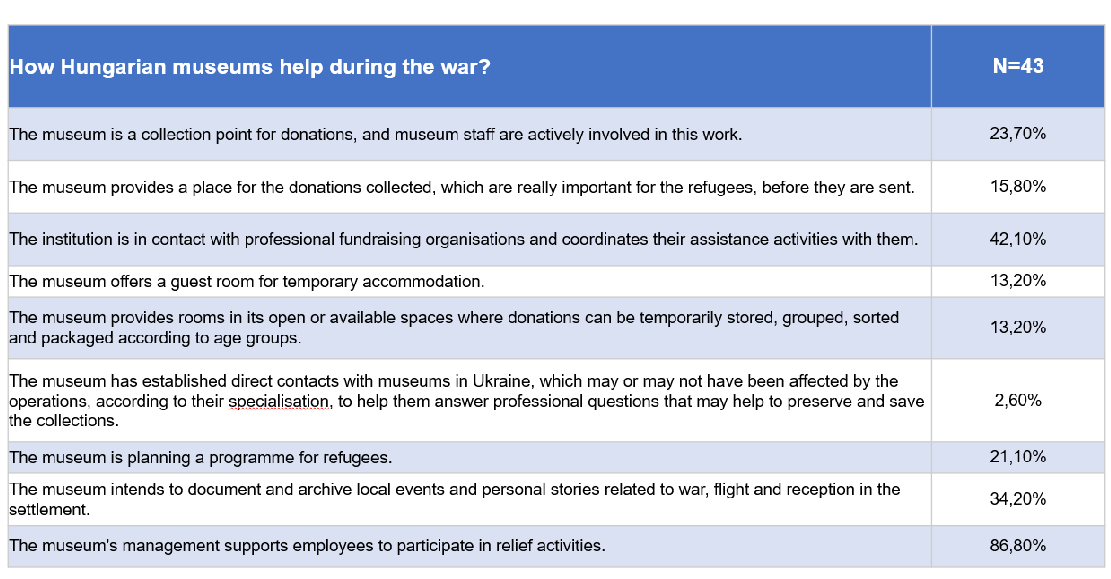 In the spirit of the recommendations, The Hungarian Museums Online launched a rapid online survey of Hungarian museums, in which institutions with museum licences could participate between 1 March and 3 March 2022. (Here we thank Pulszky Society and MVMSZ for their support.)