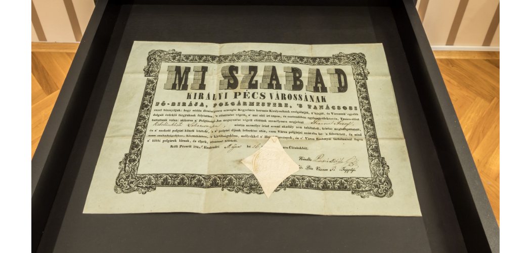 Áttekinti Európa és Magyarország átalakulását a 19. század első felében. A látogató egy szabóságba lépve ismerkedhet a reformkori öltözködéssel, a hangsúlyosabbá váló nemzeti vonásokkal. Beléphet egy Biedermeier polgári szalonba – a vendégfogadás, a bensőséges családi élet színterébe. Érdekes útleírások, visszaemlékezések és egyéb iratok idézik meg az egykori Pécset, lakosait és a korabeli életmódot. Mi történt 1848. március 15-én és az ezt követő napokban a fővárosban és a Mecsekalján? A szabadságharc időszakát bemutató teremben idővonal jeleníti meg az országos és pécsi, baranyai eseményeket. Két kiemelkedő személyiség – gróf Batthyány Kázmér (1807-1854) és Irányi Dániel – életútját külön kiemeli tárlat. A kiállítás néprajzi terme olyan paraszti/köznépi eredetű vagy használatú tárgyakat mutat be, amelyen jórészt a nemzeti címer, kisebb részben a magyar trikolór, a nemzeti hadsereghez és harchoz fűződő jelkép: a huszár, mint hangsúlyos díszítőmotívum szerepel. Végül megismerhetők a nemzeti jelképek, 1848 emlékezete, és hogy ezek az idővel hogyan változtak, valamint megtekinthetőek a közelmúltbeli pályázat nyomán született diákmunkák is.