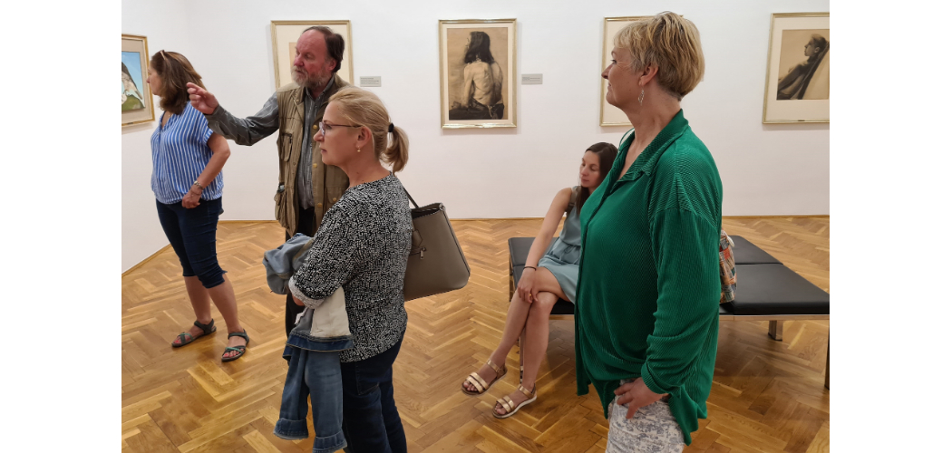 A program Tillai Gábor történész, jeles kulturális menedzser nagyszerű tárlatvezetésével zárult a Csontváry 170, majd a Másik nyolcak. Festőnők a magyar képzőművészetben című kiállítások tereinek élvezetes bemutatása során.