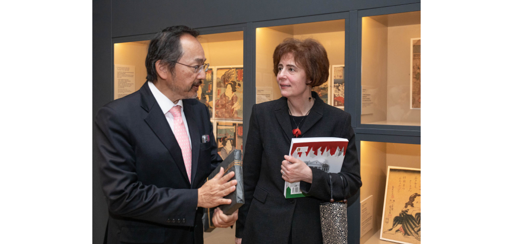 Őexcellenciája Otaka Masato úrral, Japán magyarországi nagykövetével a Hold a felhők felett című kiállítás megnyitóján 2023 májusában