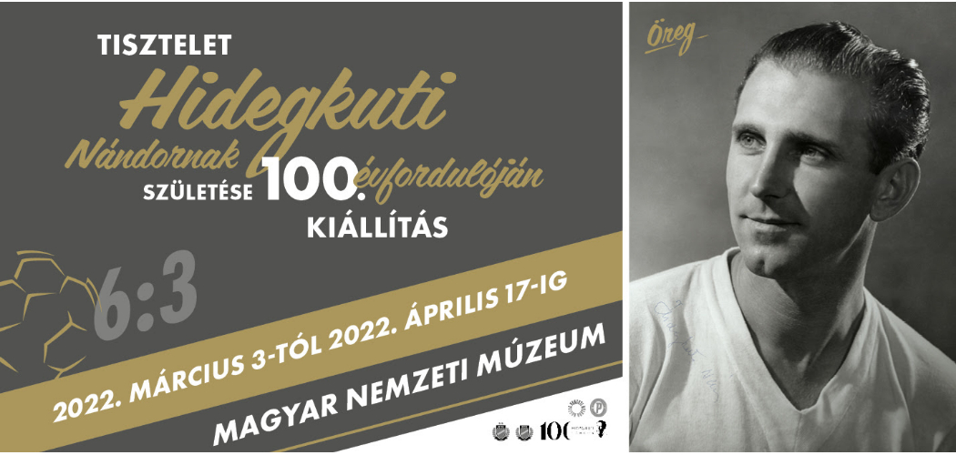 100 éve, 1922. március 3-án született Hidegkuti Nándor labdarúgó, vagy ahogy a legendás Aranycsapatban hívták: az Öreg. Az MTK színeiben játszó győztes, aki a felejthetetlen londoni 6:3-as meccsen mesterhármast rúgott az angol csapatnak. 69 válogatott mérkőzésén összesen 39 gólt szerzett, olimpiai bajnok volt 1952-ben, és világbajnoki ezüstérmes 1954-ben. A 2022. március 3. és április 17. között látogatható, „Tisztelet Hidegkuti Nándornak születése 100. évfordulója alkalmából” című kiállítás a futballzseni életének és pályafutásának állít emléket.