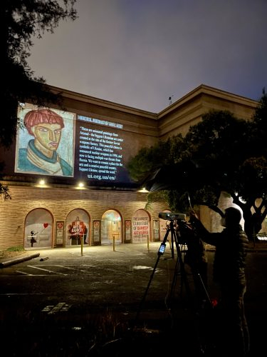 A szolidaritás megnyilvánulásaként a Művészeti Arzenál gyűjteményéből készült alkotások képeit vetítették ki egy felhőkarcolóra és a művészetek palotájára San Franciscoban.