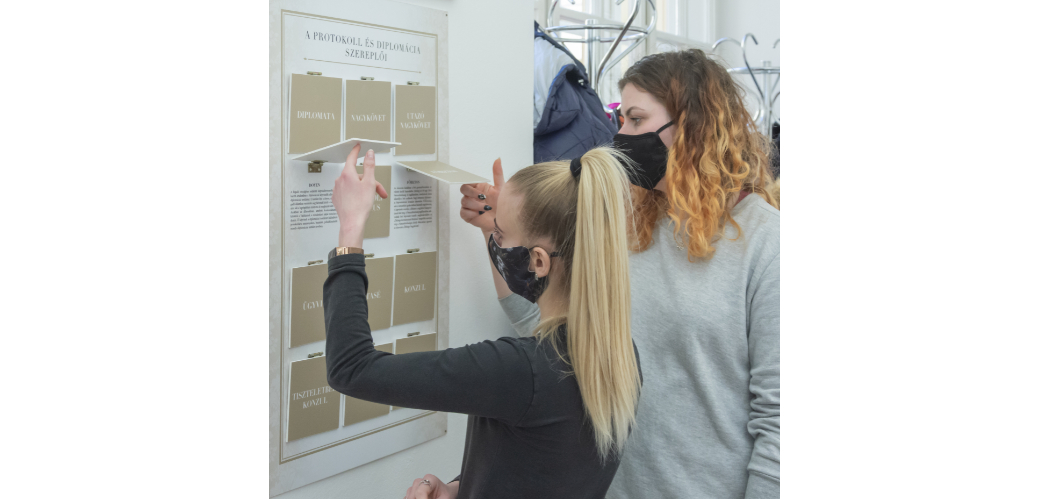 A látogatók nagy érdeklődéssel hallgatták Hossó Nikoletta protokoll- és nemzetközi kapcsolatok elemző és dr. Török Róbert, az MKVM igazgatójának közös tárlatvezetését, majd Hossó Nikoletta Fókuszban a protokollszakember − elvárások és kihívások a színfalak mögött című előadását 2022. február 25-én.