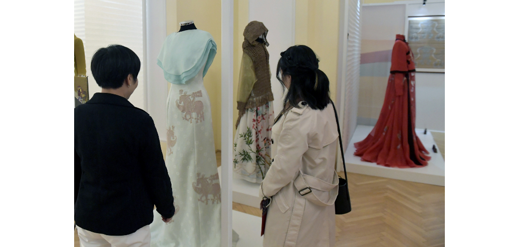 Kiemelte, hogy hangsúlyos szerepet kap a tárlaton az ősi minták felhasználása a ruhatervezésben, amely egyúttal jó példája a hagyományos kultúra megújításának is. A kiállítás hatvan önálló egységben hetvennégy ősi selyemkelmét és modern ruhaművészeti tárgyat mutat be. A tárgyakat a Kínai Nemzeti Selyemmúzeum gyűjtötte és készítette elő bemutatásra a magyar közönség számára. Hozzáfűzte, hogy a kiállítás a magyar bemutató után világkörüli turnéra indul.