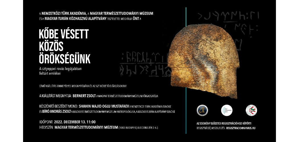 A Nemzetközi Türk Akadémia, a Magyar Természettudományi Múzeum és a Magyar-Turán Közhasznú Alapítvány Európában először mutatja be az utóbbi évtizedek legjelentősebb, 2022 augusztusában, Mongóliában feltárt ótürk rovásírásos leletanyagáról készült fotókiállítást. A Nemzetközi Türk Akadémia tárlatát kiegészítik a Kárpát-medencében előkerült rovásleletek, az orhoni rovásfeliratos kőtömbök rekonstrukciói, honfoglalás kori és Altaj-vidéki koponyák és azokról készült arcrekonstrukciók.