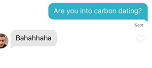 (Az eredeti szöveg szóvicce ’carbon dating’ – A Radiocarbon dating - Szénizotópos kormeghatározásra utal a szerk.)