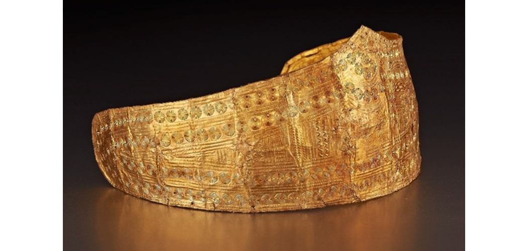 Az arany diadém 1929-ben került elő báró Miske Kálmán feltárásán a velemi Szent Vid-hegyen a világhírű aranykincs. Miske Kálmánnak a feltárásról írott feljegyzései eltűntek, így a kincs előkerülésének pontos körülményeiről nincs információnk. A leletegyüttes a késő bronzkori urnamezős kultúra emléke, készítésének ideje nagyjából a Kr. e. 1300-950 körüli évszázadokra tehető.