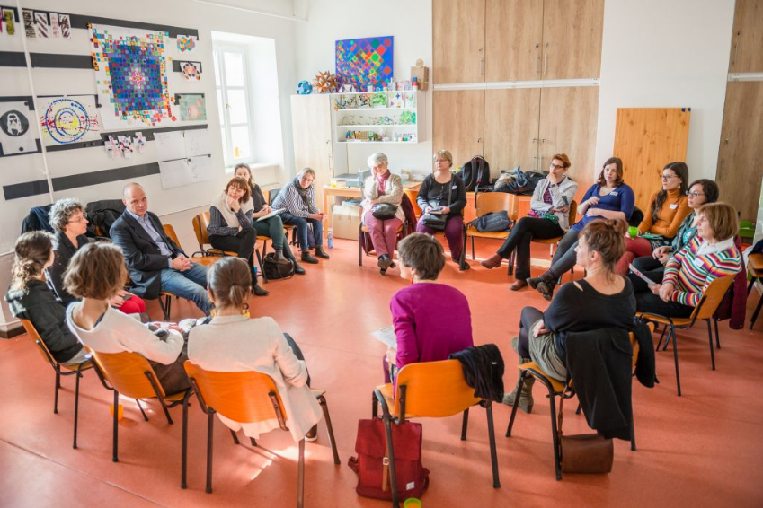A program utáni kerekasztal-beszélgetésen először a Mama, nézd! rendezvényeket vezető kollégákat: Cser Juditot és Koós Nikolettet, a Vasarely Múzeumból pedig Juhász Litzát és Turcsányi Lillát kérdeztem a témaválasztásról, az eddigi tapasztalatokról és az esetleges gyakorlati nehézségekről, majd minden érdeklődő hozzászólhatott a felvetett kérdésekhez.