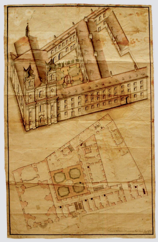 Fotó: Paul Hatzinger (1686, Linz -1752, Székesfehérvár): a jezsuita rendház alaprajza, 1744. Forrás: Szent István Király Múzeum gyűjteménye