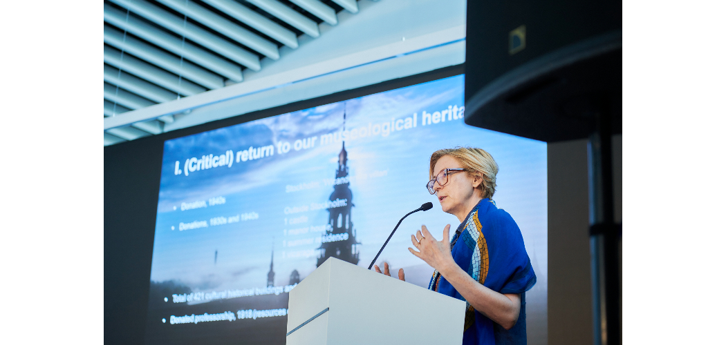 A Nordiska Múzeum igazgatója, Sanne Houby-Nielsen Kontinuitás és változás között egyensúlyozva: a stockholmi Nordiska Múzeum megújítása címmel tartotta meg előadását. Prezentációjának fókuszában a múzeumi örökség kritikai újragondolása állt, a múzeum alapítójának, Hazeliusnak az eredeti elképzeléseihez visszanyúlásával, azoknak újraértelmezésével. A múzeum nem csak svéd, hanem több északi nép kulturális örökségének megőrzőjeként jött létre, azonban a svéd anyagvált az intézmény történelme során uralkodóvá. A múzeum újrapozicionálásának egy fontos része volt az, hogy visszaállítsa a múzeum transznacionális pozícióját és láthatóbbá váljon nem csak a svéd, hanem a többi nép hangja is. A múzeum kiemelt felelősségének tekinti a számi gyűjtemények fejlesztését a számikkal közös együttműködésben. Az előadás kitért emellett az infrastrukturális fejlesztésekre, a gyűjteményezés és dokumentáció új módszereinek fejlesztésére, digitális megoldásokra, és a múzeum inkluzív, nyitott szemléletének fontosságára.