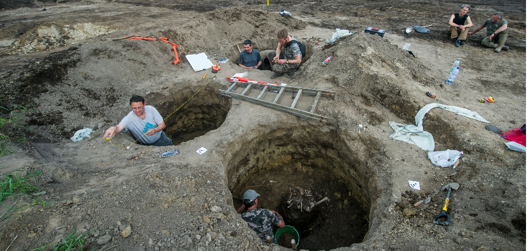 A feltárás során a felszín alatt, több mint egy méter mélyen, összesen hat ember maradványaira bukkantak, de edények, kerámiadarabok és állatcsontok is előkerültek. Az úgynevezett halomsíros kultúra emlékét találták meg.