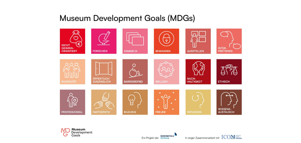 Nem sokkal a múzeumi definíció német fordításának közzététele után 2023 szeptemberében az ICOM Németország és a NORDMETALL Alapítvány megkezdte a közös folyamatot a MFC-k kidolgozására. 2024 májusában az ICOM által szervezett, 18. Bodeni-tavi Nemzetközi Szimpózium keretében a Múzeumi Fejlődési Célokat hivatalosan is bemutatták és megvitatták egy workshop keretében.