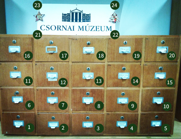 A győr-moson-sopron megyei Csornai Múzeum is adventi kalendáriummal készül az ünnepre. A múzeum facebook oldalán kerül megosztásra minden nap, de közvetlenül is elérhető a genial.ly online alkalmazásban elkészített naptár. Minden nap múzeumi tartalmakkal, videókkal, játékokkal vagy egyéb meglepetésekkel várják az érdeklődőket.