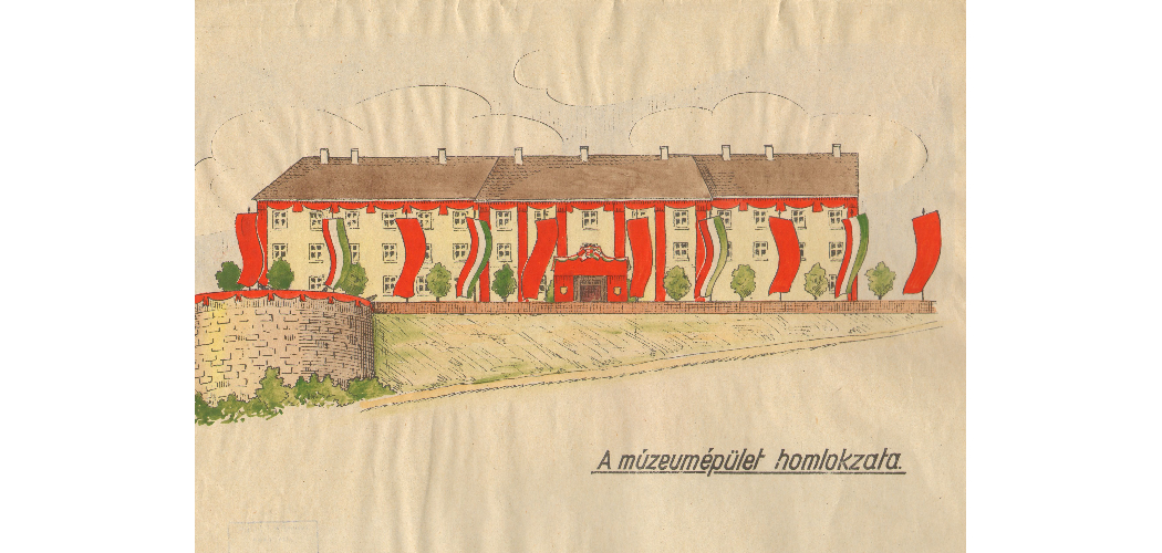 A Honvéd Múzeum megnyitására készült homlozatdíszítés terve, 1949