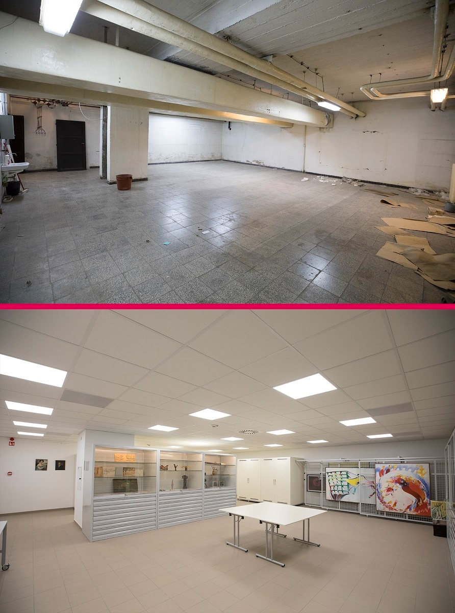 A Dornyay Béla Múzeum 2017. év végén sikeres EFOP pályázatot nyert a Múzeumi és levéltári intézményrendszer tanulást segítő infrastrukturális fejlesztései keretében. „A Dornyay Béla Múzeum tanulást segítő infrastrukturális fejlesztése” c. pályázat a múzeum alagsorában lévő képzőművészeti raktár és digitalizációs helyiség infrastrukturális felújítását, oktatótérré történő átalakítását tartalmazta. Az oktatótér egyrészt olyan digitalizációs műhellyé vált, amely interaktívan is használható, azaz a diákok bevonhatóak a gyakorlati munkába, ki tudják próbálni a műtárgyfotózást, a filmkészítést, és az utómunkálatok folyamataiba is bekapcsolódhatnak. A képzőművészeti raktár pedig a műtárgyvédelmi előírásokat betartva egy olyan oktatótérré vált, ahol a múzeum legjelentősebb képzőművészeti anyagát be tudjuk mutatni a nagyközönségnek, pl.: Mihályfi-gyűjtemény ki nem állított darabjait, Földi Péter Kossuth-díjas festőművész és Balázs János festőművész alkotásait. A projekt 2018. december 31-én fejeződött be, 2019. márciusában adtuk át a nagyközönségnek, melynek sikere a járvány kitöréséig töretlen volt, folyamatosan érkeztek az iskolások és óvodások különféle foglalkozásokra. A raktárban kialakítottunk egy részt a képzőművészeti témájú könyvtári anyagnak is. A projekt legfőbb célja, hogy az érdeklődők megismerjék azt a folyamatot, hogy mi történik egy képzőművészeti műtárggyal, amikor bekerül a múzeumba. Megnézhetik a csomagolást, a nyilvántartásba vételt, a műtárgyfotózást, stb. A fejlesztés során a három korszerűsített raktárhelyiség mellett a közlekedő, a mellékhelyiség (mely régészeti tárgyak mosására kiválóan alkalmas lett), a lépcsőház is újjáépítésre került, új nyílászárók kerültek elhelyezésre és a biztonsági rendszert is korszerűsítettük. A műtárgykörnyezetet egy nagyteljesítményű légkezelő rendszer biztosítja.