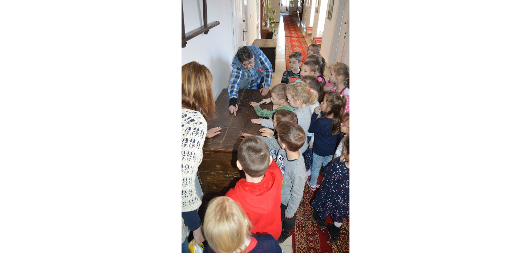 Óvodások a néprajzi kiállítás folyosóján