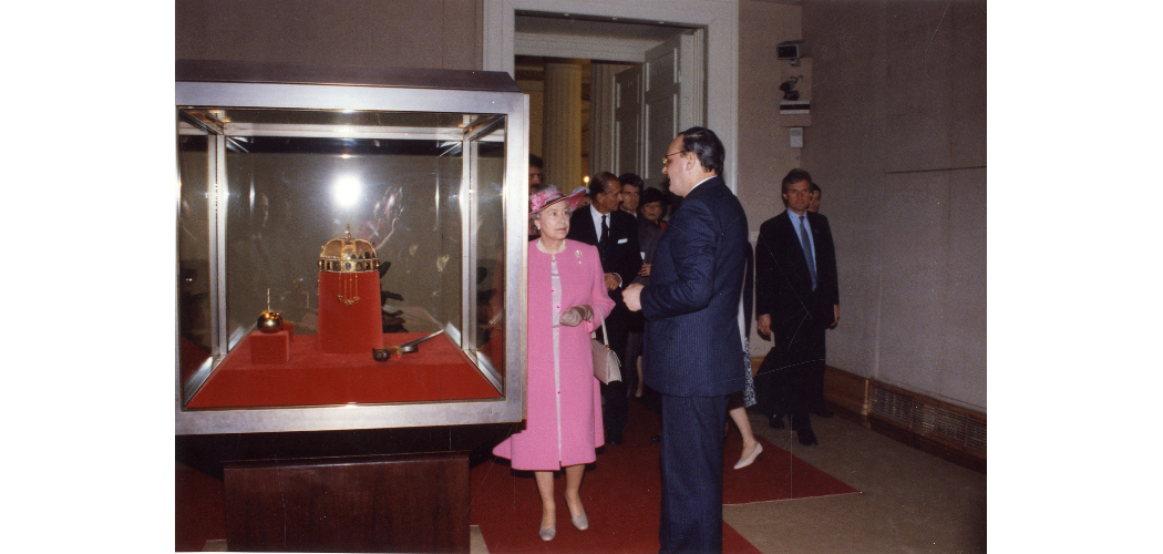 Erzsébet királynő látogatása a Szent Koronánál, Fodor István főigazgató vezetésével (1993)