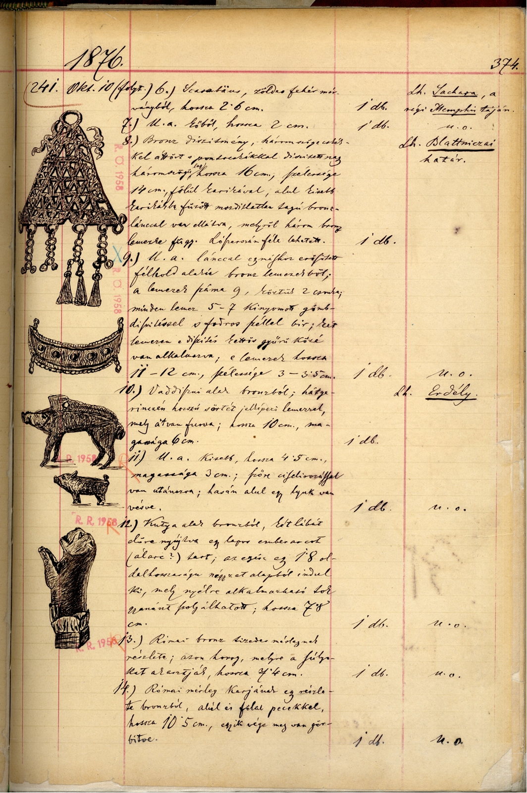 Az Érem- és Régiségtár leltárkönyvének egyik oldala