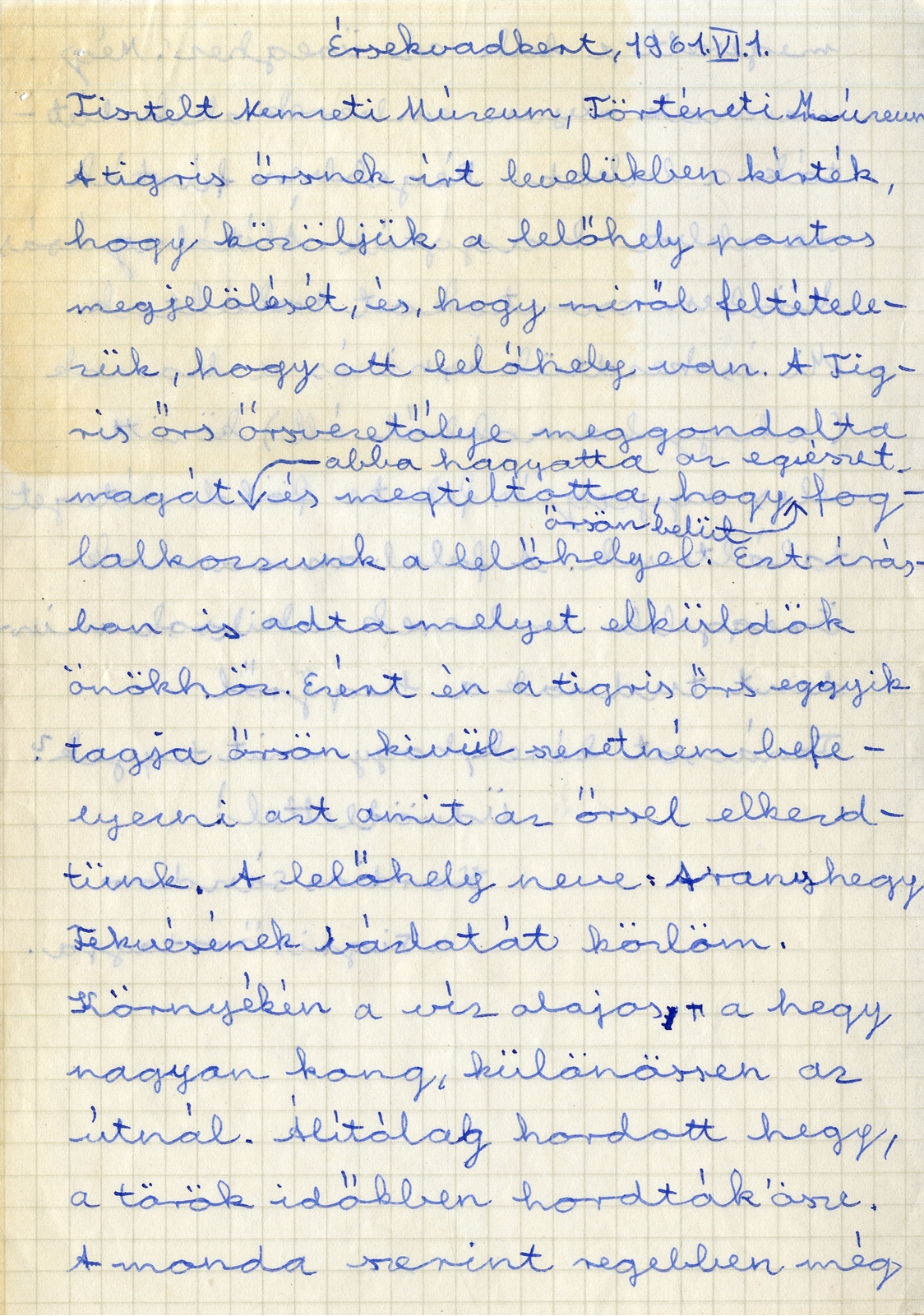 Részlet Horváth A. János 1933-as ásatási jelentéséből (Nógrádverőce)