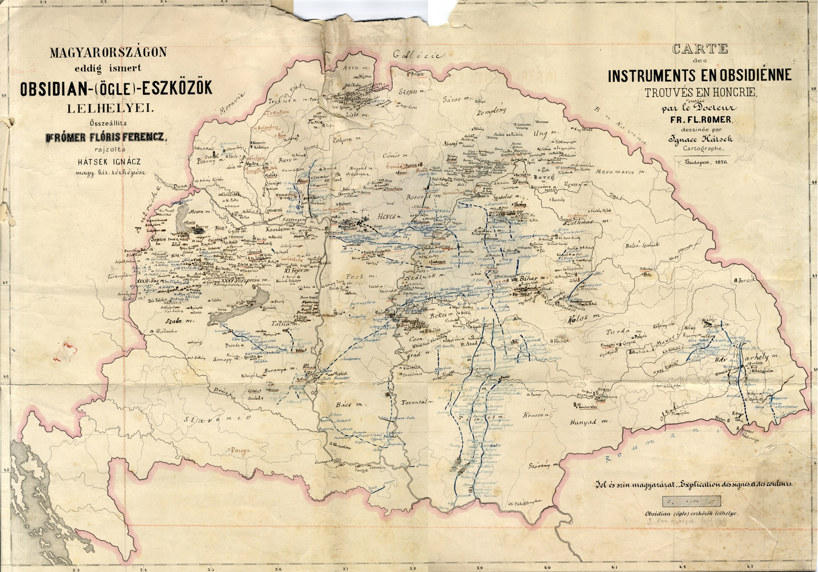 Rómer Flóris összesítő térképe a Kárpát-medence obszidián leleteiről