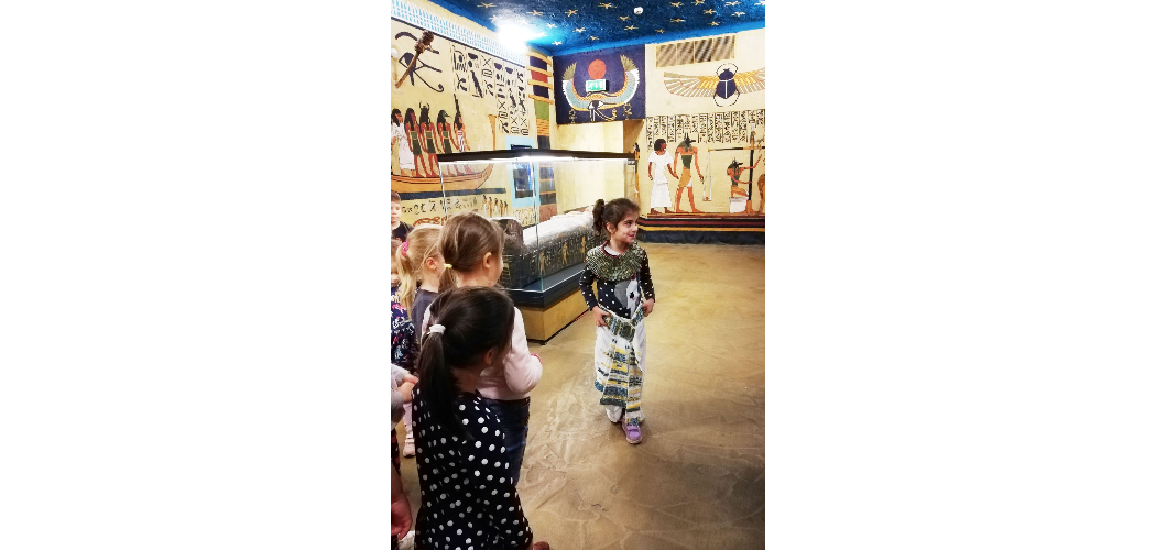 Egyik legkedveltebb foglalkozásunk az ókori Egyiptom témakörét feldolgozó óráink. A múzeum különlegességei közé tartozik a két múmia, amely nagy izgalomban tartja a gyerekeket. Szívesen bújnak régészek vagy akár sírrablók bőrébe, hogy a foglalkozás során időutazáson vegyenek részt. Megérkezéskor mindenki megkapja saját útlevelét a világutazó bőröndből. A cél a piramis belsejében található kincs meglelése. A kiállított tárgyak segítségével, a korosztályi sajátosságokat szem előtt tartva ismertetjük meg a gyerekeket Egyiptom világával, az ország kultúrájával, építményeivel, a régi egyiptomiak szokásaival. A foglalkozás során piramist építhetünk, szarkofágot díszítünk vagy amulettet készítünk, és megnézzük, hogyan mutatnánk egyiptomi ruhában.