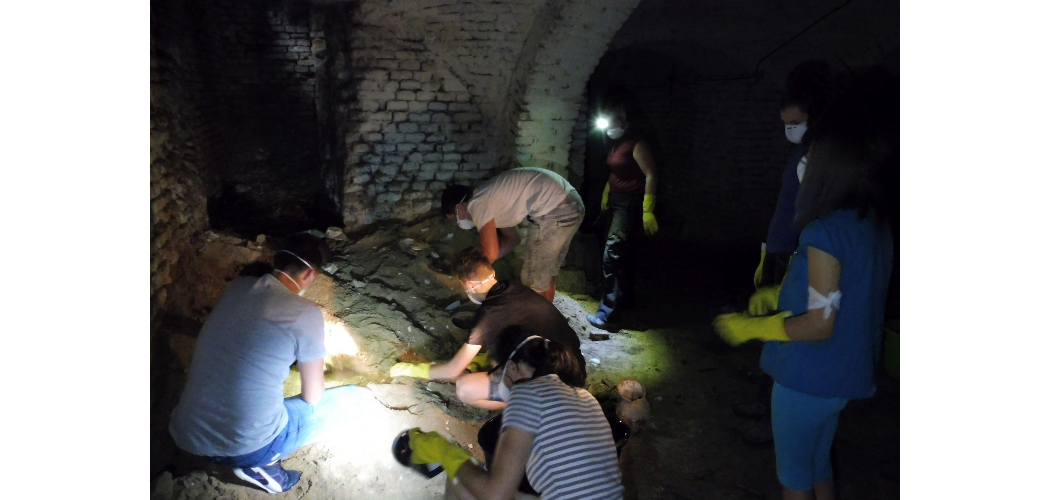 Leletmentés a kastély narancsházának pincéjében. Fotó: Kaján Marianna
