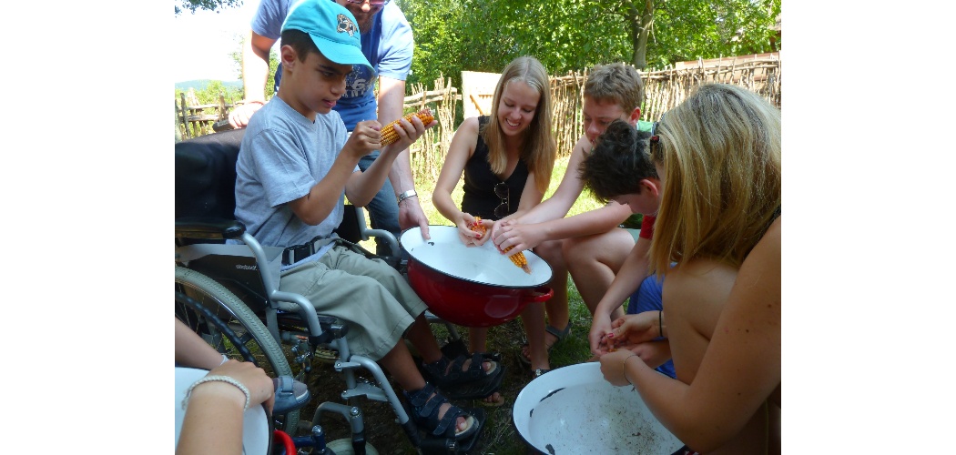 Természetesen a fizikai és az információs akadálymentesítés más, speciális módszereket követel meg bizonyos esetekben. Annak érdekében, hogy erre kellően felkészültek legyünk, múzeumpedagógusaink folyamatosan képzik magukat, gyógypedagógusokkal és rehabilitációs szakemberekkel egyeztetnek. Szeretnénk, hogy a múzeum közös találkozási pont legyen a fogyatékossággal élő és az ép fiatalok számára, ahol lehetőségük nyílik arra, hogy egymást jobban megismerjék, miközben közösen fedezik fel a Skanzent. Tanítási szünetben, nyaranta hirdetjük meg a Múzeumpedagógiai Nívódíjjal elismert Integrált tábort, ahol a résztvevők fele halmozottan sérült fiatal, fele pedig iskolai közösségi szolgálatot teljesítő gimnazista vagy önkéntes középiskolás.