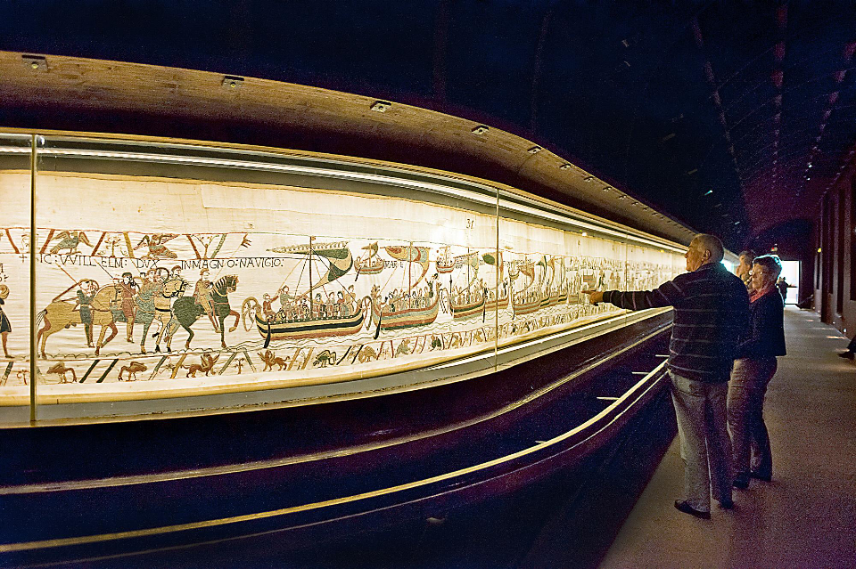 A lenyűgöző, 70 m hosszú hímzett falikárpit 58 jelenetben 600 karakterrel, 200 lóval, 500 más állatfigurával és 50 fával illusztrálja a Hódító Vilmos az angol trónra lépésének történetét.