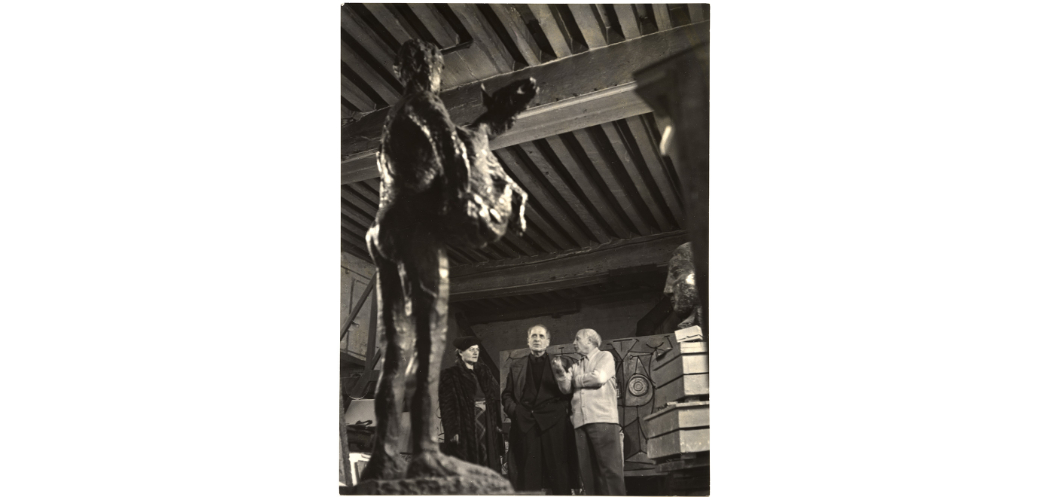 Czóbel Béla és Modok Mária Picasso műtermében, Antibes, 1955, fotó: Marton Ervin