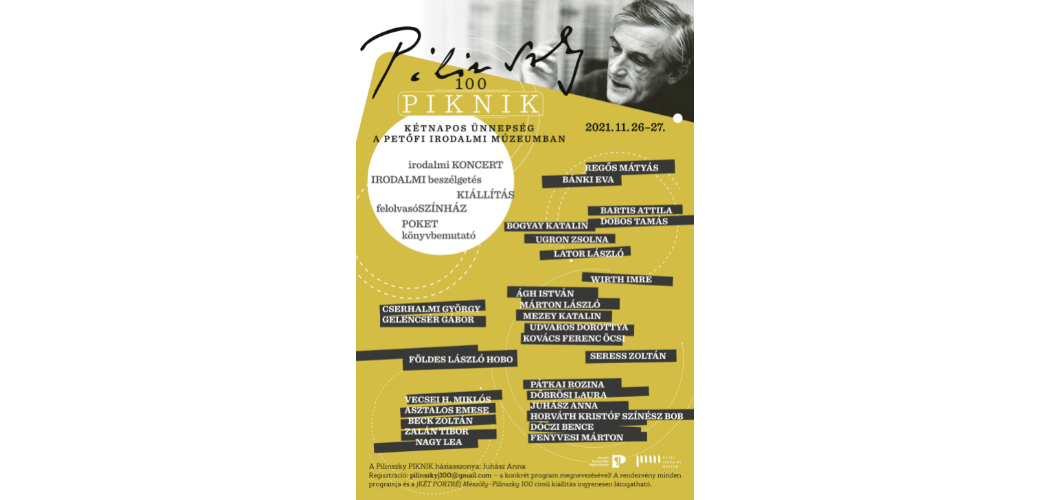 Pilinszky Piknik címmel, 2021. november 26-án és 27-én két napos ünnepséget tart a Petőfi Irodalmi Múzeum a huszadik század egyik legismertebb magyar költőjének, Pilinszky János születésének századik, halálának negyvenedik évfordulóján. A centenárium kiemelt eseményeként a programban rendhagyó irodalomóra, tárlatvezetés, beszélgetések és felolvasószínházi előadások is helyet kaptak. Az események helyszíne a Petőfi Irodalmi Múzeum.