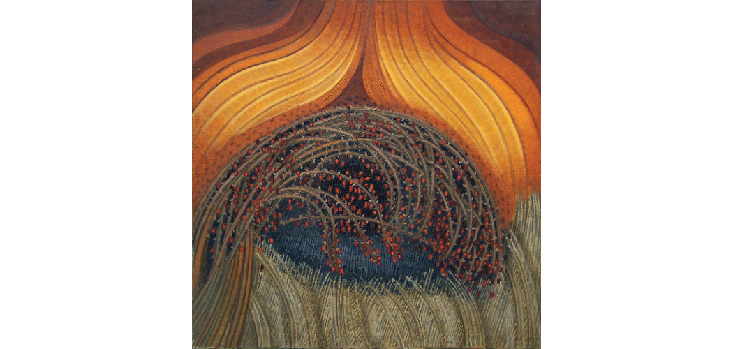 Pirk László: Égő csipkebokor. 2013, olaj, vászon, 100X100 cm
