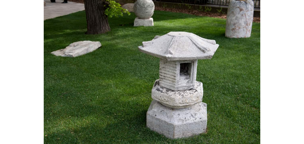 Leírás: A japánkertek jellegzetes díszítőeleme a kőlámpás. Fotó: Áment Gellért / Szépművészeti Múzeum, Budapest, 2015.