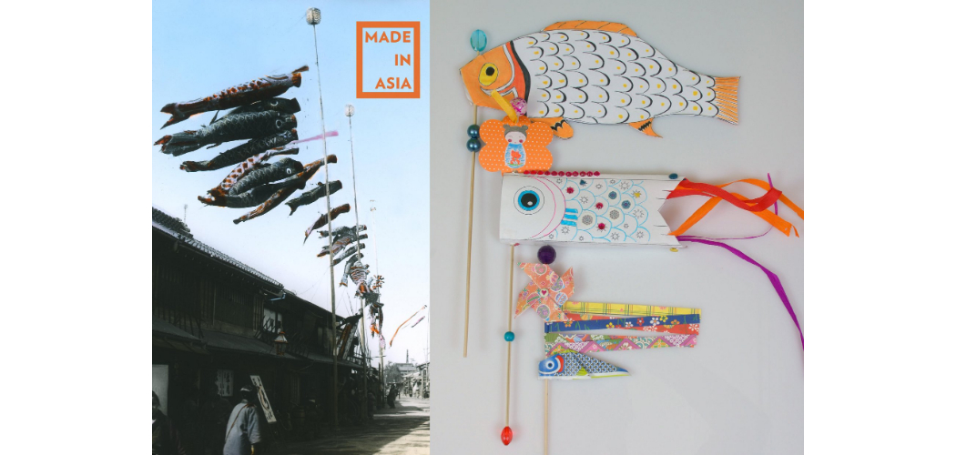 Leírás: dr. Bozóky Dezső felvétele a repülő pontyokról, melyeket május 5-én a fiúk napján tesznek ki Japánban és a kézműves alkotások