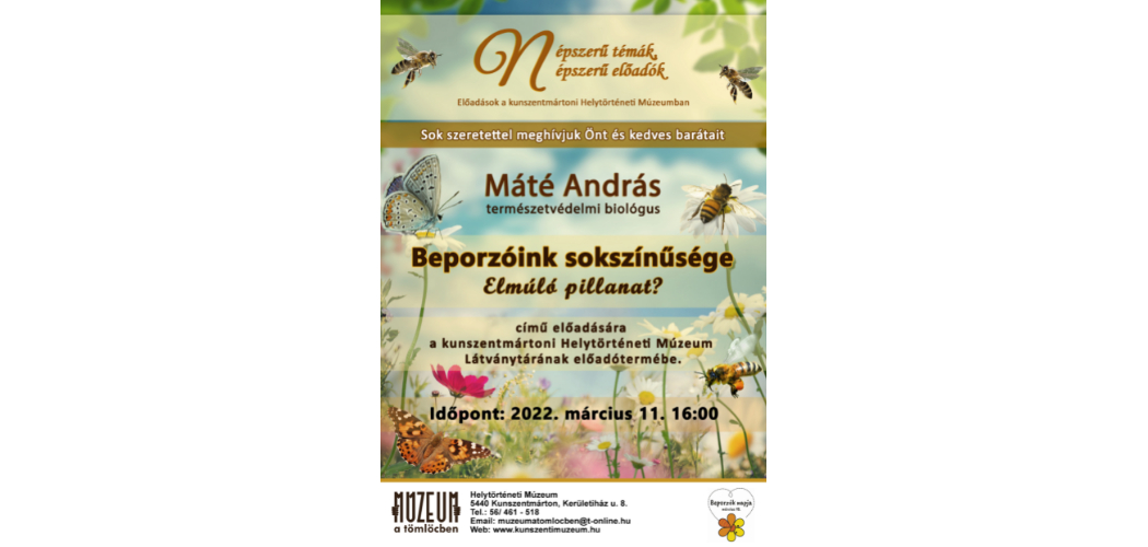 A Magyar Természettudományi Múzeum idén 5. alkalommal rendezi meg a Beporzók Napját, amelyre március 5-én, szombaton szeretettel várjuk kedves látogatóinkat! Az elmúlt évtizedekben az emberi tevékenység miatt jelentős mértékben lecsökkent a beporzó rovarok száma. A Beporzók Napja ezen hasznos élőlények védelmére hívja fel a figyelmet. A jeles napon a múzeumunk látogatói megismerkedhetnek a hártyásszárnyú rovarok jeles képviselőivel, a „nem-rovar” beporzó állatokkal, és megtudhatják, hogy mit tehetnek a beporzók védelme érdekében.