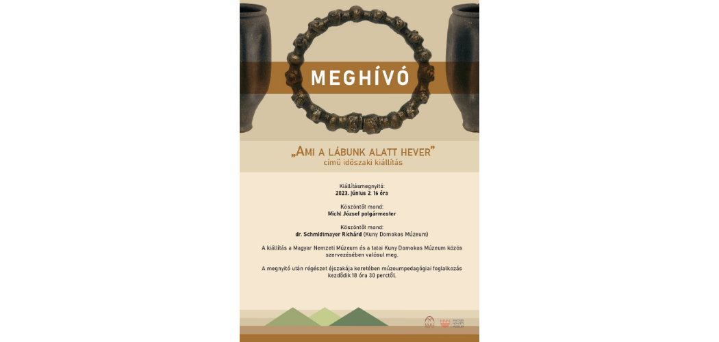 2023. június 2-án, pénteken a Kuny Domokos Múzeum a Magyar Nemzeti Múzeum közreműködésével új időszaki kiállítást nyit „Ami a lábunk alatt hever” – Közösségi régészet Komárom-Esztergom vármegyében címmel. A tárlaton az elmúlt évek legfrissebb leletei mellett a múltban előkerült önkéntesek vagy múzeumbarátok által megmentett tárgyak is bemutatásra kerülnek.