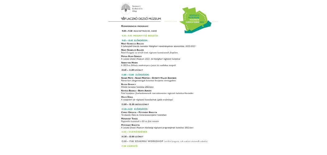A Laczkó Dezső Múzeum hagyományteremtő szándékkal régészeti konferencia- sorozatot indít. Minden évben a vármegye területén kutatást folytató régészek számolnak be eredményeikről. 2024. március 8-án a 2022-es év kutatásait ismertetik a Laczkó Dezső Múzeum, a Magyar Nemzeti Múzeum, az ELTE, a HUN-REN valamint a Lilles-i egyetem kutatói.