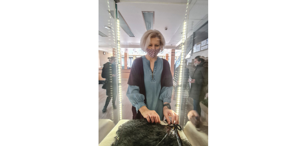 A Göcseji Múzeum strucctollas legyezőjével tehát ebben a hónapban több helyen is találkozhat az érdeklődő: olvashat róla a Facebook oldalon, sok érdekességet megtudhat a weboldalon lévő blogírásban, de ha elsétál a zalaegerszegi polgármesteri hivatal felé, a vitrinkiállításon belül ez a gyönyörű fekete tollas műtárgy kacérkodik majd a 21. századi szemlélővel. Itt azonban egy meglepetéssel is készültünk: a legyező mellett kiegészítésként egy 1896-os zalaegerszegi estély „tánczrendje” is díszíti a teret.