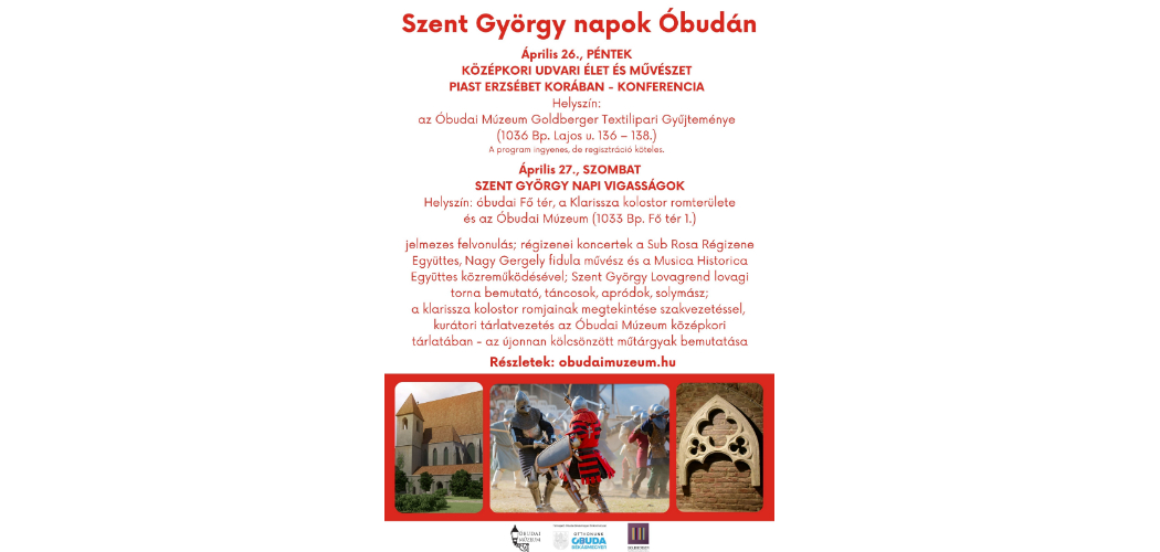 Az Óbudai Múzeum – Óbuda-Békásmegyer Önkormányzatának támogatásával – hagyományteremtő szándékkal rendezi meg ez évben először a Szent György napi Vigasságokat. A két napos rendezvény – konferencia, jelmezes menet, lovagi játékok, régizenei koncertek és tárlatvezetés – koncepciójának alapja, hogy a középkori Óbuda jelentőségét, mint egykori királyi, majd királynéi központot, annak a korabeli Európával lépést tartó, kiemelkedő építészetét, művészetét, udvari életét jobban megismertesse a kerület lakosaival és az idelátogató közönséggel.